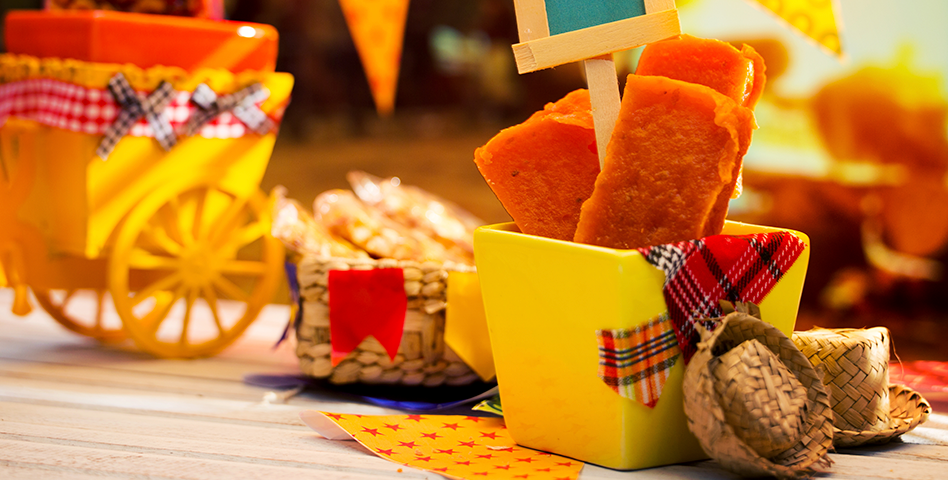 E agora vamos falar da melhor parte? Quentão, vinho quente, chás quentes, suco de milho, curau, canjica, bolo de fubá, pão de queijo, pipoca, paçoca, doces… Hum! Por precaução, sempre verifique com os convidados se há algo que eles não comam – por opção ou por restrição ou alergia alimentar, garantindo que todos fiquem bem servidos e satisfeitos. Hora de pular a fogueira!