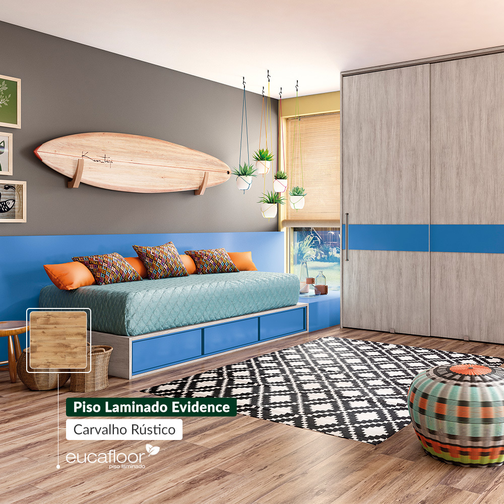 Diferentemente do que muitos pensam, o laminado Eucafloor pode ser instalado sobre outros tipos de piso. Claro, desde que a superfície anterior esteja sem umidade ou qualquer irregularidade. Cada caso deve ser avaliado por um especialista da área. No entanto, afirmamos que sim, você pode mudar a estética do ambiente sem “quebra-quebra”! Olha como o laminado deixa tudo com um toque incrível.