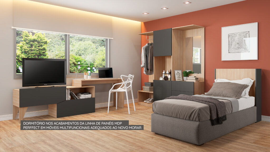 Para atender essa demanda a indústria investiu em pesquisas e esforços no desenvolvimento de produtos utilizados na produção dos móveis. E foi atenta a essa necessidade que a Eucatex desenvolveu a linha de painéis MDP Perffect, pensada para contribuir no desenvolvimento de móveis e na diversificação de portfólio das marcas, possibilitando a criação de produtos diferenciados e com design aplicado.