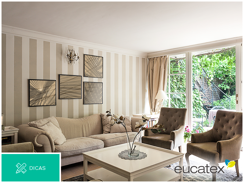 Chame o seu pintor de confiança e escolha as cores preferidas das tintas Eucatex para fazer composições incríveis de listras no seu ambiente.