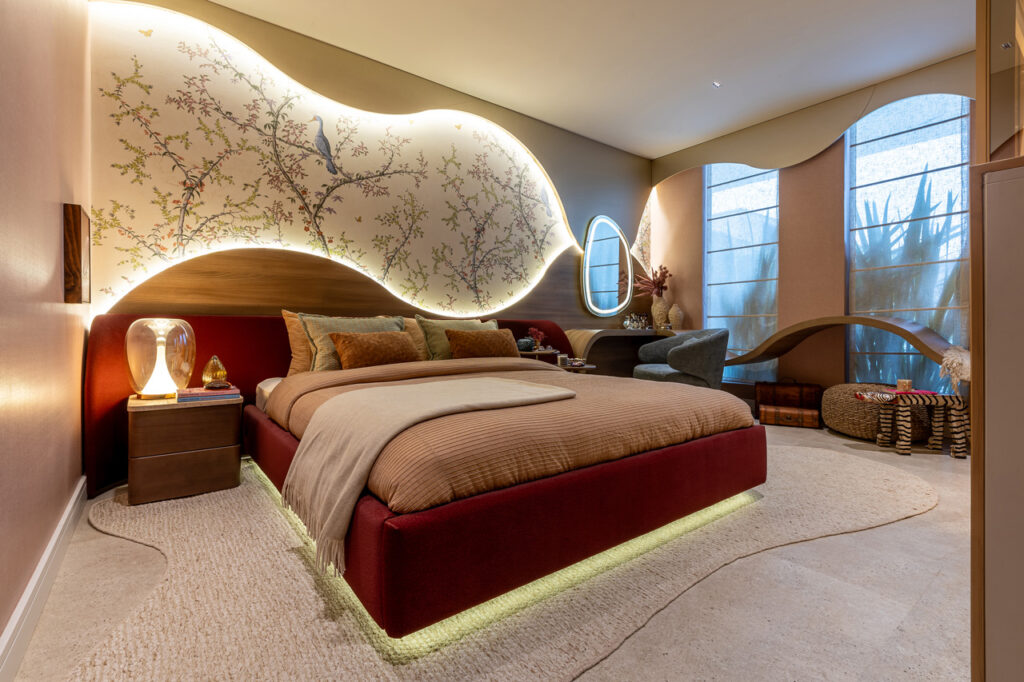 No Quarto Tekoá, idealizado pelos profissionais Diego Miranda Leite e Zeh Pantarolli, que fazem parte do Estúdio Pantarolli Miranda, a ideia era criar um espaço sensorial equilibrando ancestralidade e inovação, que remete às belezas e particularidades da floresta Amazônica.
