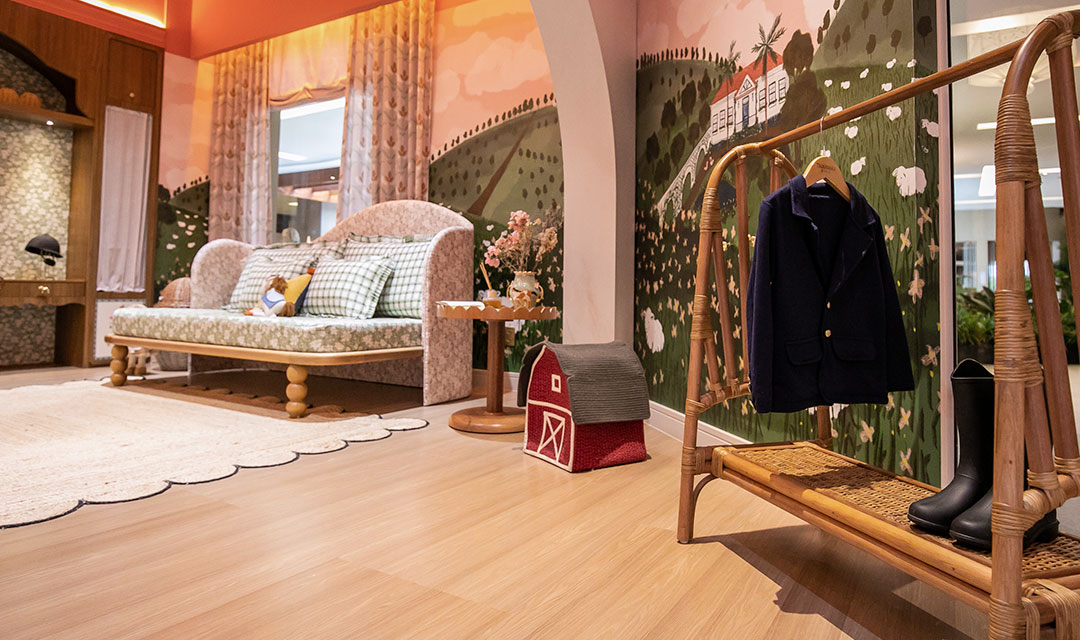 Neste ano, estivemos presentes com o Quarto da Fazenda, da designer de interiores Sophia Abraham. Esse aconchegante espaço foi idealizado com o objetivo de resgatar as memórias e afeto de uma doce infância.