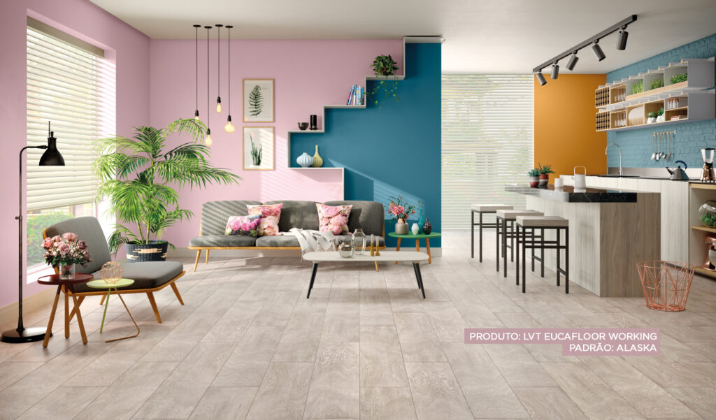 Esse efeito também é fielmente reproduzido em uma série de revestimentos, entre eles, os pisos laminados e vinílicos Eucafloor, que são indicados para as áreas internas. Quem opta por uma dessas propostas, conta com a estética do cimento queimado aliada à praticidade de instalação e manutenção.