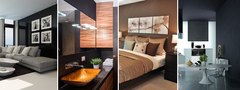 Dica: tenha em mente que a decoração de interiores em tons escuros é recomendada para ambientes amplos, pois estas cores dão a impressão de diminuir o tamanho do cômodo.