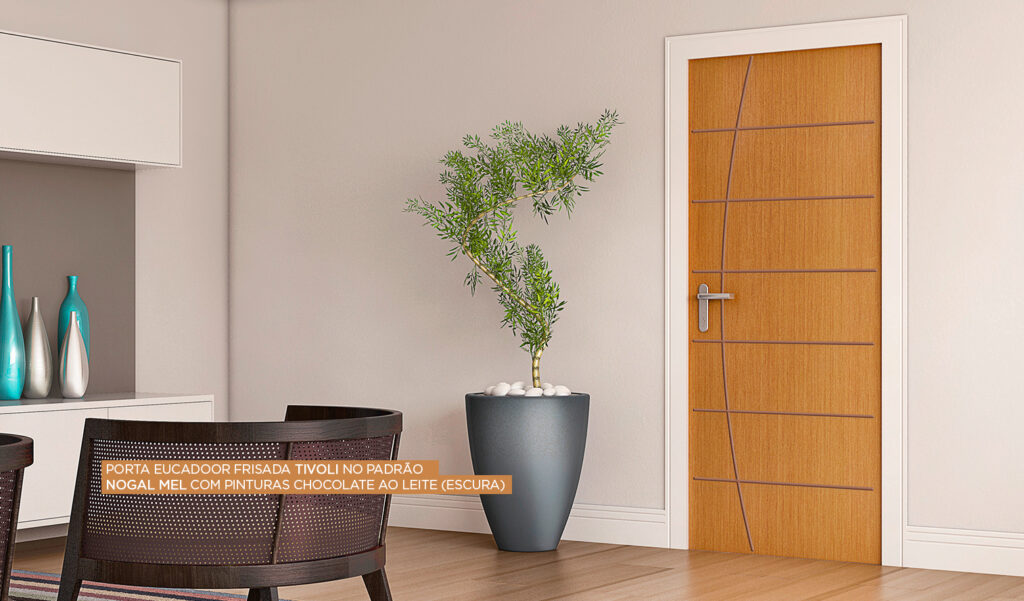 As portas da linha Eucadoor Frisada podem ser adquiridas com acabamento Eucaprimer (prontas para receber pintura) ou já acabadas (Eucaplac). Nesta segunda opção, mesmo com a pintura na maior parte da folha de porta, os frisos necessitam de um acabamento posterior para garantir proteção e durabilidade ao produto, possibilitando explorá-los como um recurso decorativo com mais personalidade.
