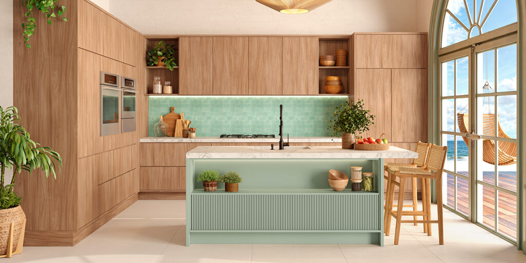 Padrões com tonalidades amadeiradas ou que remetem às plantas, como o Verde Mar, são perfeitos para compor os ambientes dessa tendência, pois proporcionam a sensação de acolhimento e bem-estar que só a natureza pode oferecer.