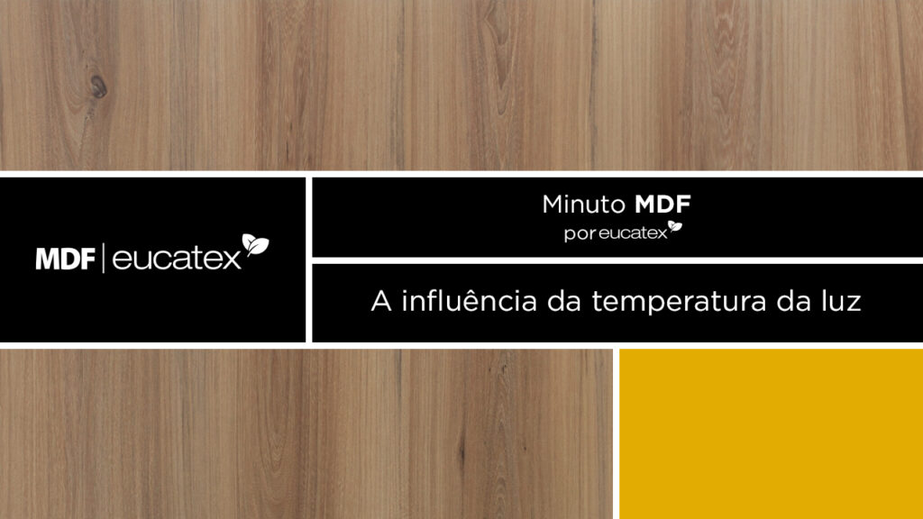 Eucatex, traz experiência com três temperaturas de luz (quente, neutra e fria) para mostrar o efeito sobre os painéis MDF. Uma dica muito importante para orientar as escolhas no projeto.
