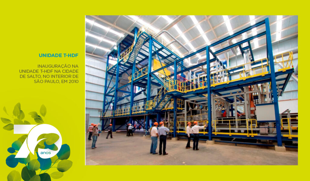 Foi assim que, em 2010, a Eucatex inaugurou a unidade T-HDF/ MDF, em Salto (SP), dando início à produção de chapas e painéis de alta tecnologia e resistência mecânica.