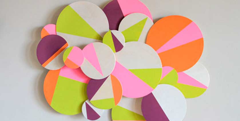 Após a tinta estar seca, cole os círculos de MDF um sobre o outro, formando o desenho desejado.